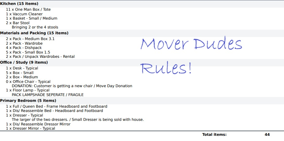 Creating an inventory list is an excellent way to prepare for a move and an important step towards providing certainty for those moving. Whether downsizing into a retirement community, relocating to be closer to family, or simply organizing a lifetime of belongings, a written list of what is happening with each item has many benefits. At Mover Dudes, our team specializes in creating these inventory lists used by moving companies and the clients themselves.
